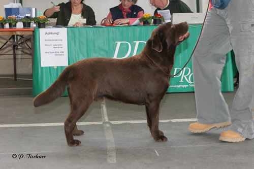 Color: ChocolateBreeder: Mary ThomasLOF RET L 8/151856Sire: Fairywood's XinoDam: Patience du Moulin Le Comte Field Trial Qualified 7 CAC – 2 RCAC Bulgarian Champion German Champion (DRC) Serbian Champion